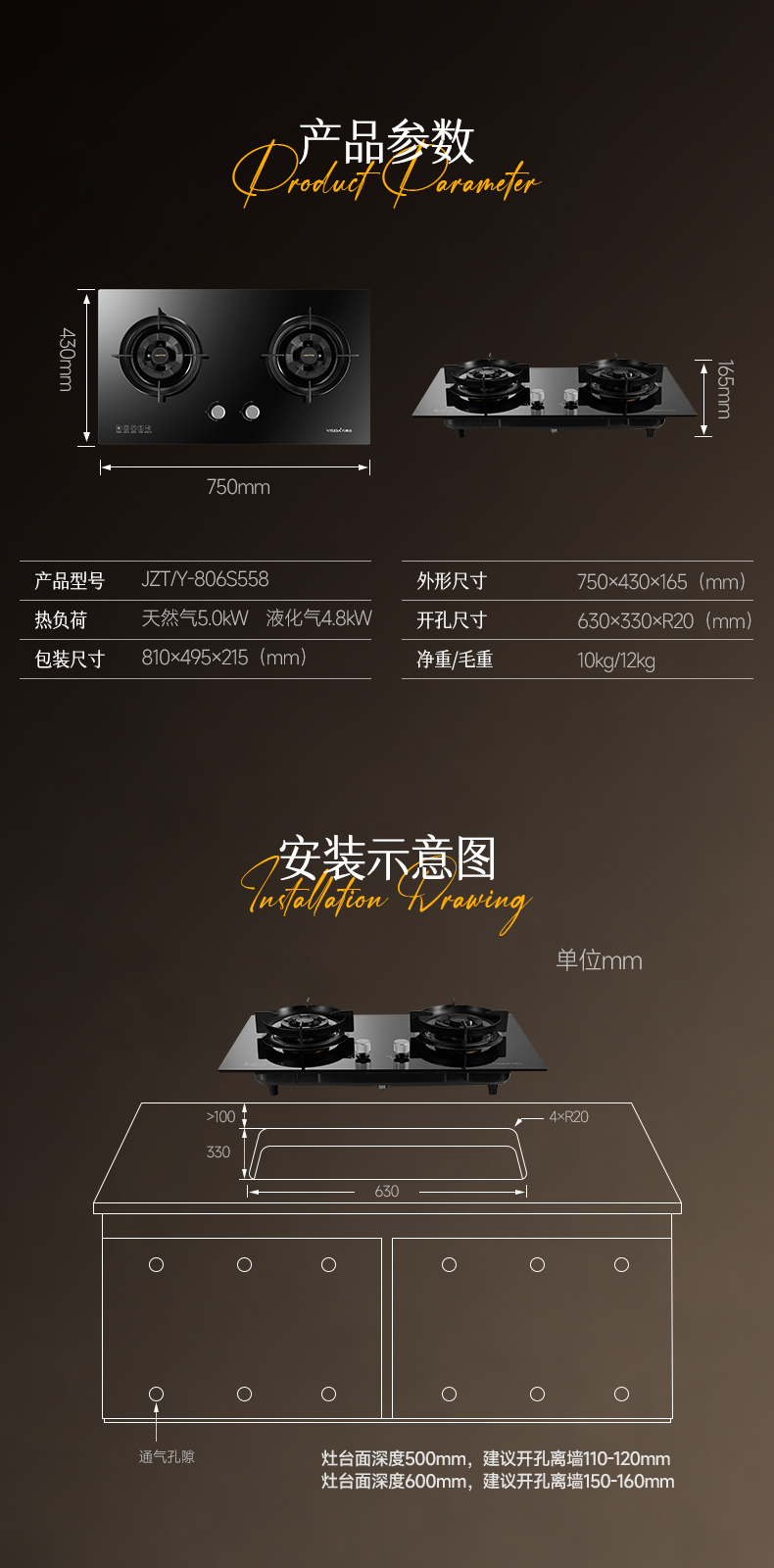 热负荷:天然气5.0KW/液化气4.8KW
