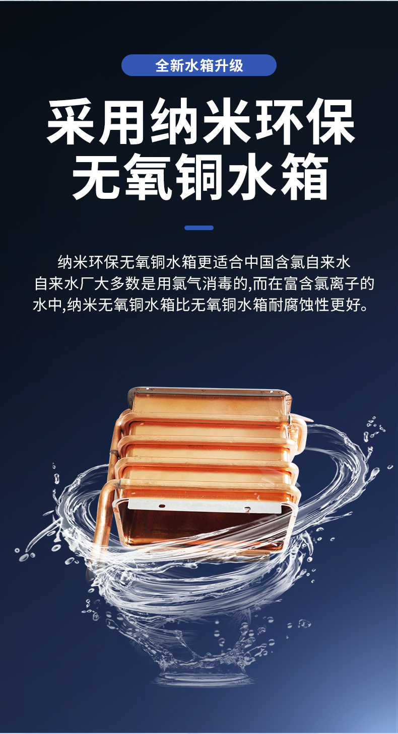 ◆纳米环保无氧铜水箱,坚固耐用、经久耐腐蚀;