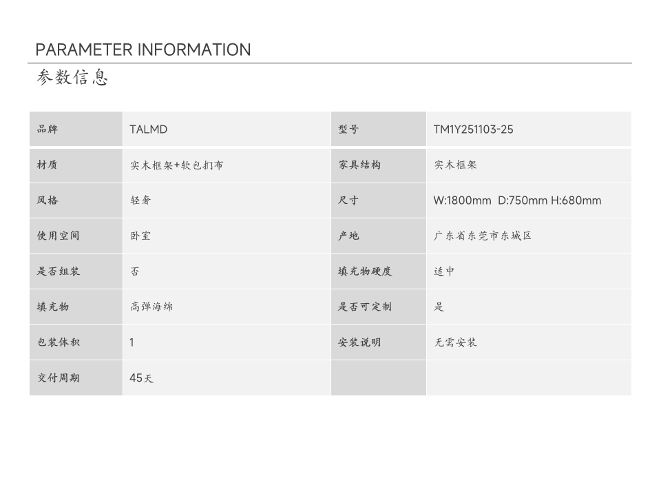 • 商品材质:实木框架+软包扪布