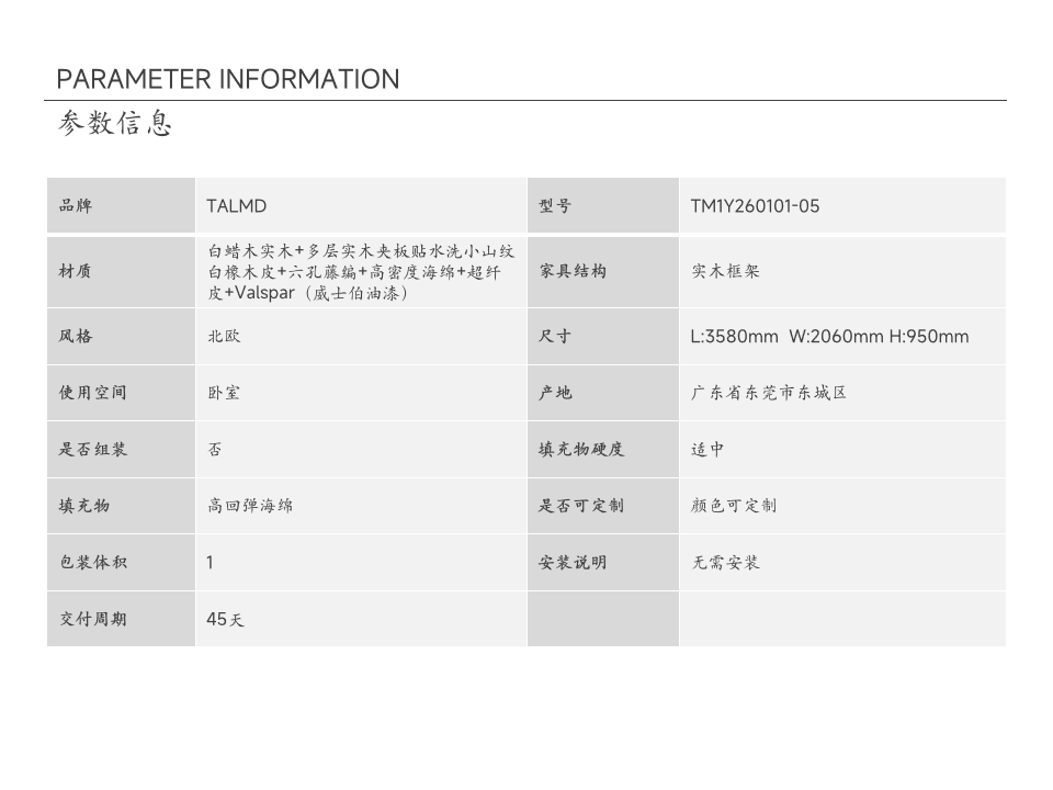 • 商品材质:白蜡木实木+多层实木夹板贴水洗小山纹白橡木皮+六孔藤编+高密度海绵+超纤皮+Valspar(威士伯油漆)