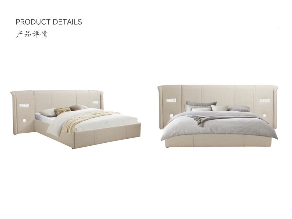• 商品材质:实木框架+皮革软包+裥棉