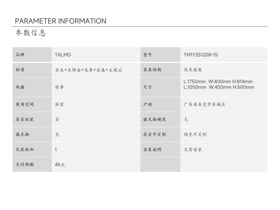 • 商品材质:实木+木饰面+皮革+金属+大理石