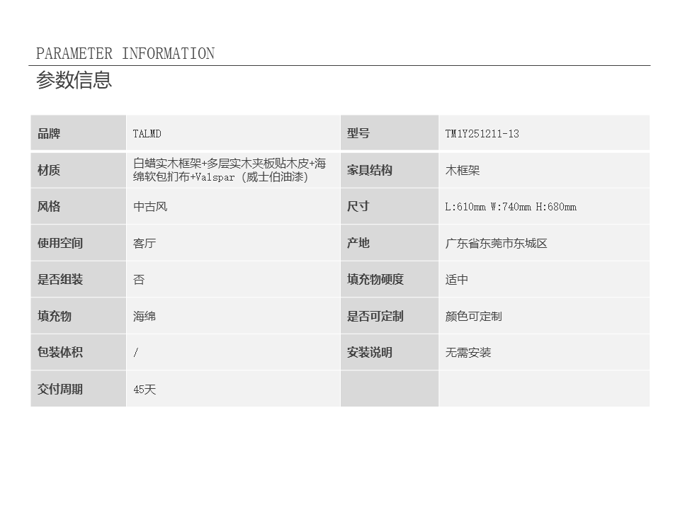 • 商品材质:白蜡实木框架+多层实木夹板贴木皮+海绵软包扪布+Valspar(威士伯油漆)