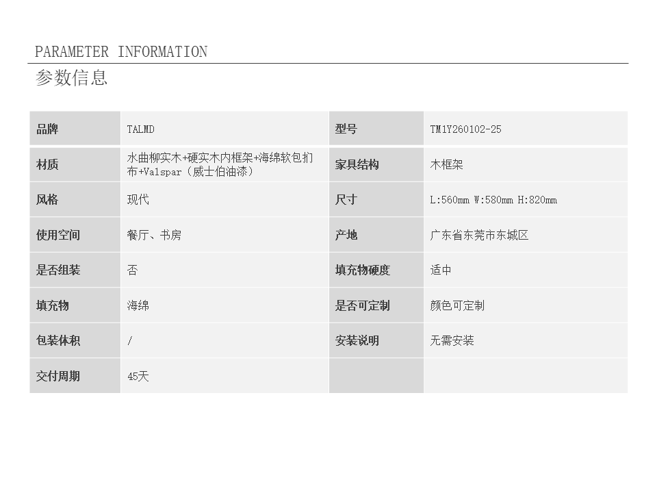 • 商品材质:水曲柳实木+硬实木内框架+海绵软包扪布+Valspar(威士伯油漆)