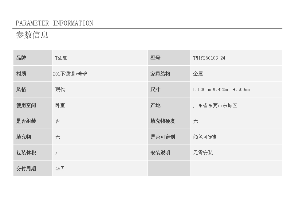• 供货周期:45天