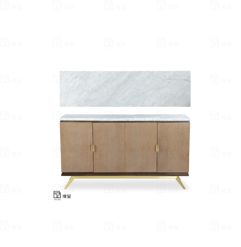 • 商品材质:美国进口白蜡木实木,进口中密度板或多层实木夹板, 法国尼斯木皮,染色影木拼花,纯铜本色五金拉手,拉丝香槟金201不锈钢底架, 大理石面板,Valspar(威士伯)油漆;