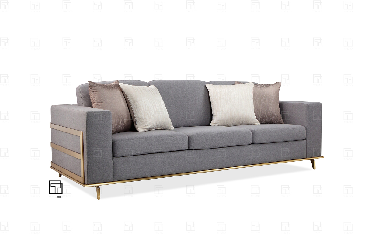 • 商品材质:欧洲榉木实木框架+多层实木夹板或硬杂木内架+方德海绵软包扪布/皮+201#拉丝香槟金不锈钢脚架+Valspar(威士伯油漆)