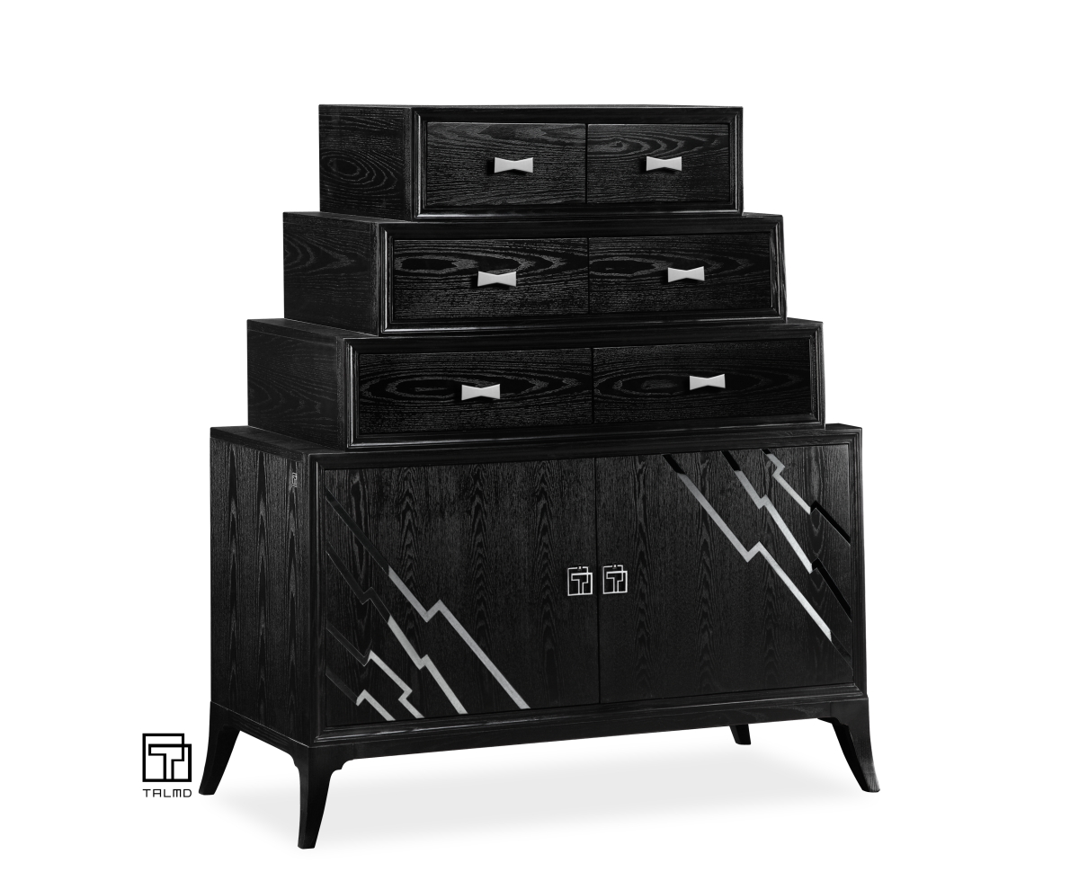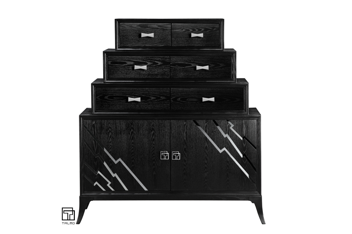 • 商品材质:水曲柳实木+多层实木板(夹板) 天然水曲柳木皮,镶嵌304拉丝不锈钢装饰,刷镍五金拉手,Valspar(丽利油漆)