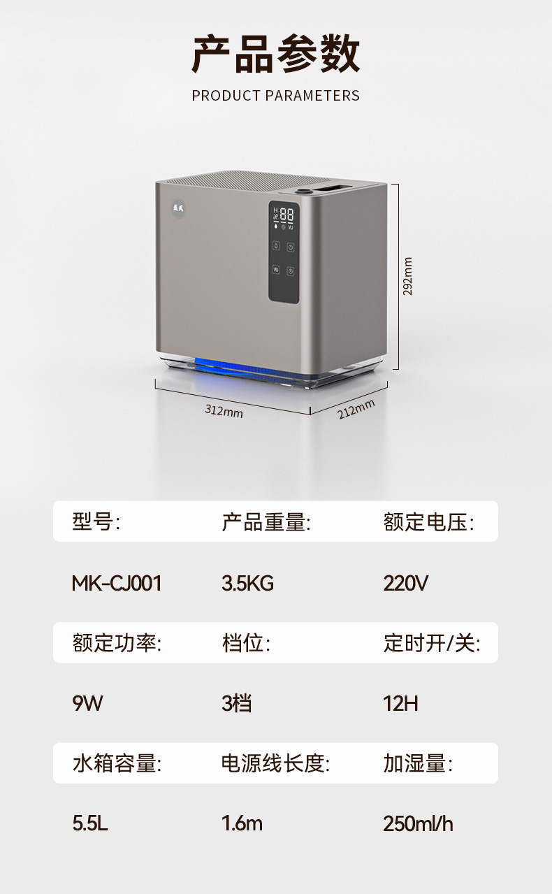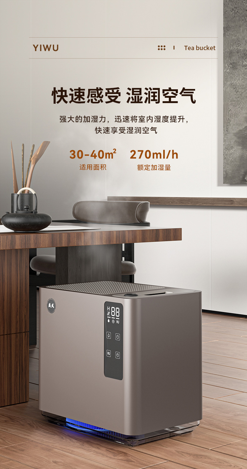 MK-CJ001-02 益武智能免倒茶水桶蒸发器过滤器办公室无雾加湿器负离子空气风扇