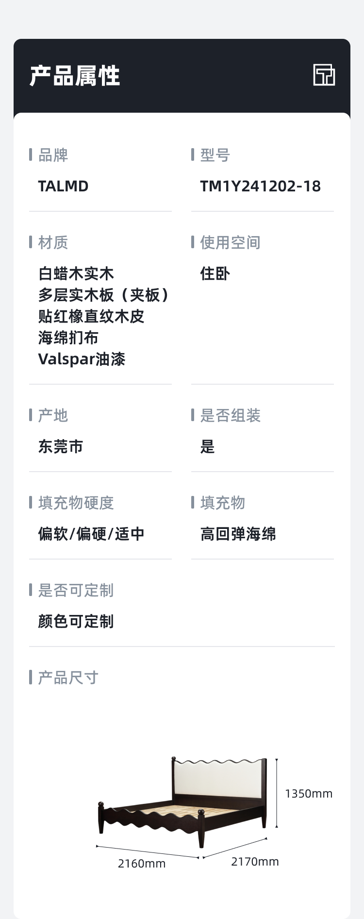 • 商品规格:2160*2170*1350(床垫尺寸:2000*2000*250)